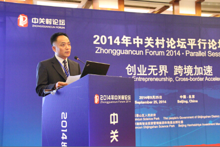 9月25日,在中關村管委會和石景山區政府的支持下,中關村科技園區石景山園管理委員會與北京瀚海智業投資管理集團成功承辦了2014中關村論壇年會—創業發展分論壇“創業無界 跨境加速”專場。國家科技部火炬中心副主任楊躍承先生,中關村科技園區管理委員會副主任宣鴻先生,石景山區人民政府副區長司馬紅女士,國家科技部火炬中心孵化器處陳晴處長,中關村管委會創業服務處楊彥茹處長,北京市科委高新處副處長夏世飛先生,瀚海智業投資管理集團董事長王漢光先生等領導一同出席了本次專場分論壇。