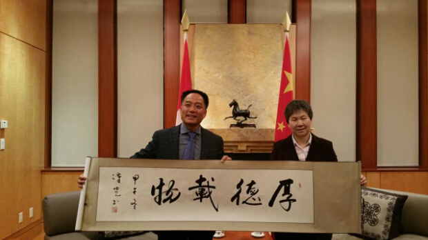 王漢光董事長表示,“商以載道,成人達(dá)己”是瀚海智業(yè)不變的經(jīng)營理念,瀚海智業(yè)將積極為國家、為社會(huì)做出積極的貢獻(xiàn)。最后,王董事長把一幅精心創(chuàng)作的書法“厚德載物”贈(zèng)予溫哥華領(lǐng)事館。