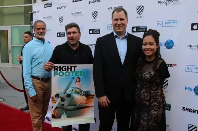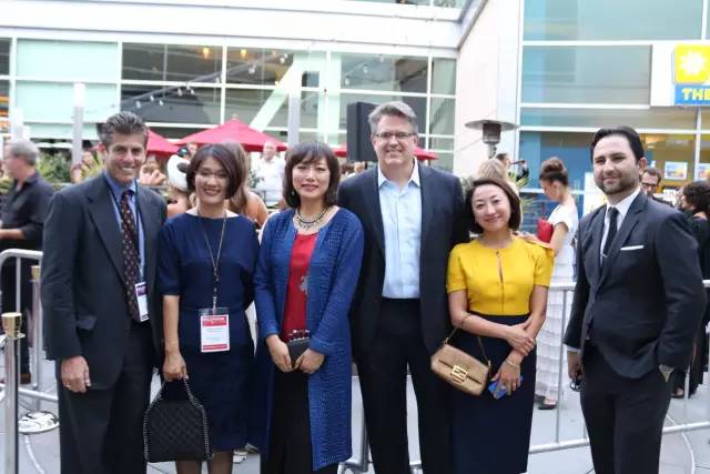 (左起:Mark Frommer, 摩根斯坦利高級副總裁 左二:Robert Lundberg, 北美華獅影業主席 左四: Kelly Zhang, Hanhai Studio運營總監 右四:Brad Parks, 好萊塢電影節首席執行官右一:Denise Gutierrez, Cal State LA 經濟系)
