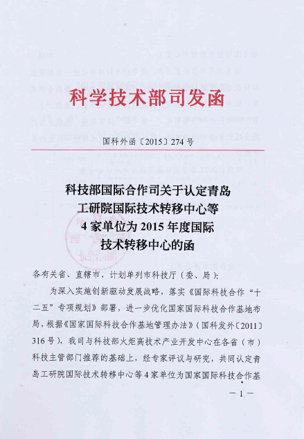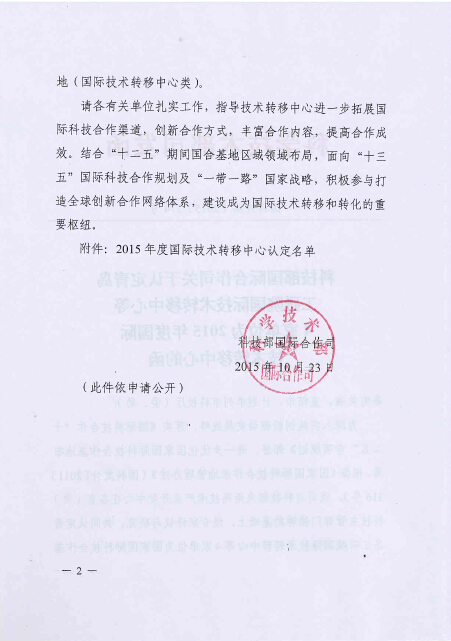 瀚海智業(yè)被科技部認(rèn)定為2015年度國際技術(shù)轉(zhuǎn)移中心