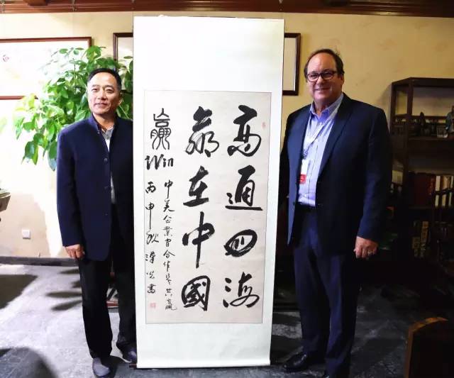 王漢光董事長(zhǎng)還向?yàn)硡^(qū)委員會(huì)代表團(tuán)贈(zèng)送了書(shū)法作品《金橋》和《商通四海,贏在中國(guó)》,寓意灣區(qū)委員會(huì)搭建中美企業(yè)金橋以及中美企業(yè)合作共贏。